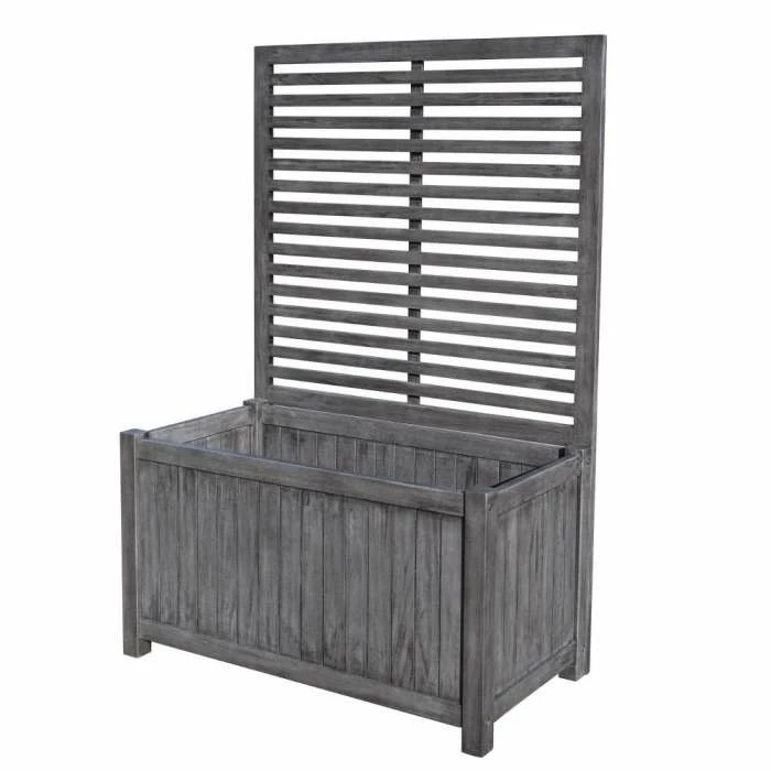 This contemporary planter with back trellis would suit a number of modern gardens. With an approximate capacity of 100 litres, you can plant up a variety of flowers, fruit or vegetables. The trellis is suitable for supporting climbing plants. The entire product has been pre-painted with a grey wash, and has a lacquer finish.